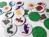 はらぺこあおむしのメモリーマッチゲーム(神経衰弱)です。厚さ2mmなので、小さいお子様でも遊べます。