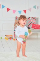 ラトルよりは少し大きめのサイズなので、お座りができるようになったらお子様の前でひっくり返して遊んであげましょう。